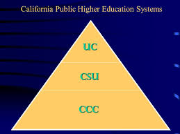 Historically, UC schools (Berkeley, UCLA, etc.) have been the creme de la creme. They are full research institutions that are world renowned. They have students from everywhere and they confer doctoral and professional degrees. They also have competitive admission standards. The CSU, on the other hand is more accessible with 23 institutions and being in parts of the state that historically had no higher ed institutions. While being accessible, they are limited in what they may offer. They do not confer professional degrees or Ph.Ds....this is a problem. In 2016, CSUs are actually turning students away thus limiting their accessibility and it also can not offer professional degrees although there may be a medical or law school in the same town to form some type of alliance to host such a school.